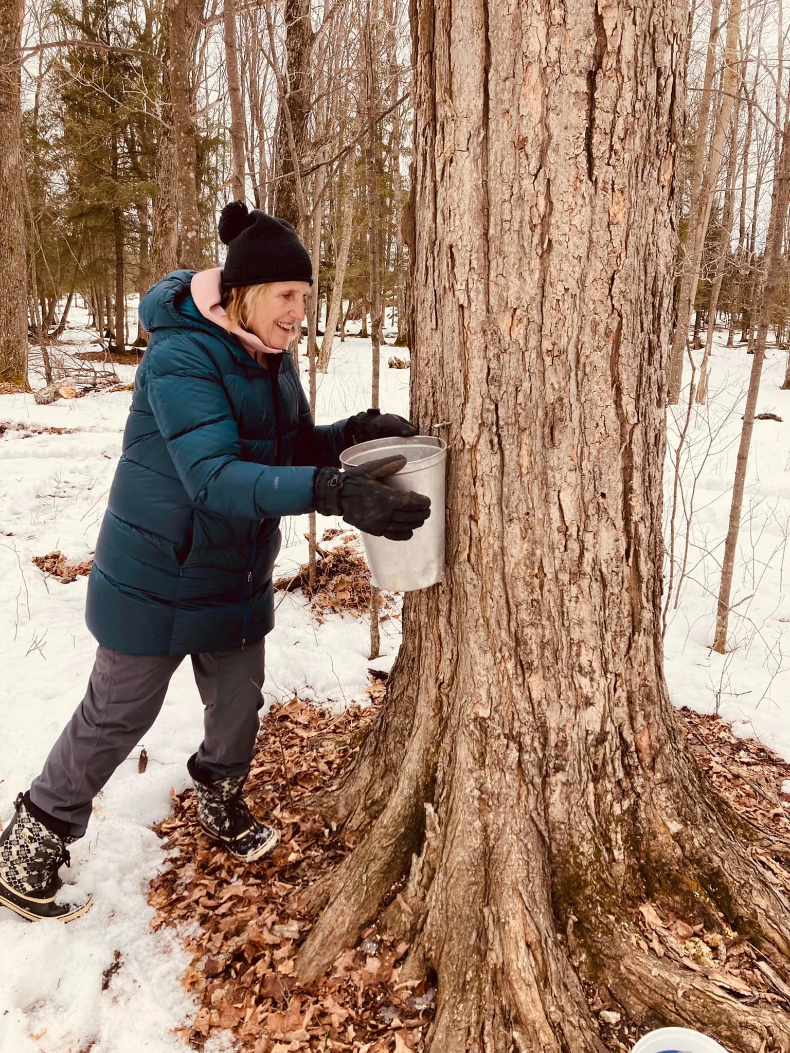 Friday we gave our thanks to the trees, ancestors, and indigenous sugarers that made it possible to do what we do, and did our opening tapping in our family sugarbush, The Maples (we’re super creative with naming, I know). The wonderful thing about tapping on Friday was that I tapped with my Aunt Linda, my Dad’s sister, who also grew up tapping those trees and loves the place as much as we do. We tapped about 75 trees with very little sap run that day. In addition to tapping, we worked on getting equipment ready including tractors, trailers, tanks, buckets, etc.